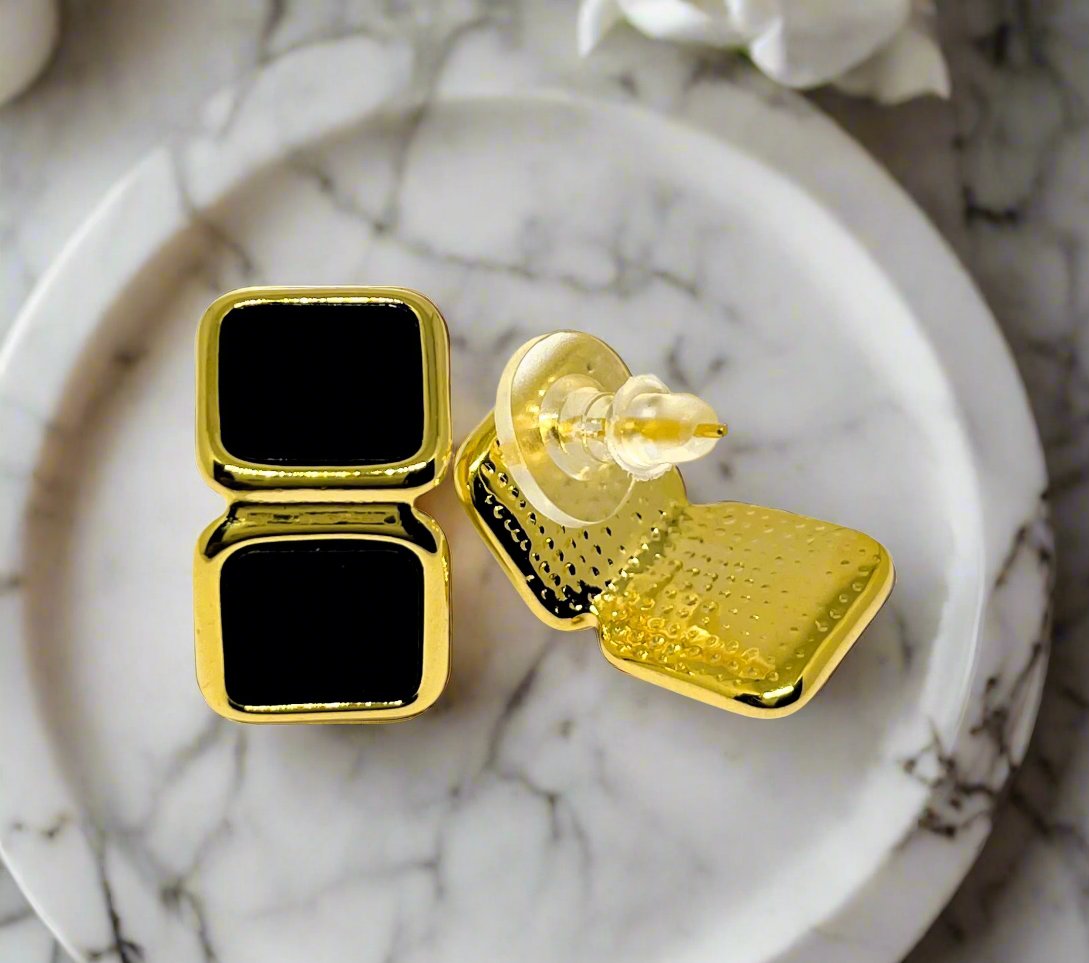 These Black and Gold Enamel Square Earrings are perfect for everyday wear. Crafted with top-quality stainless steel, these earrings are not only stylish, but also water-proof and anti-tarnish. With a sleek and modern design, they are a must-have addition to your jewelry collection.