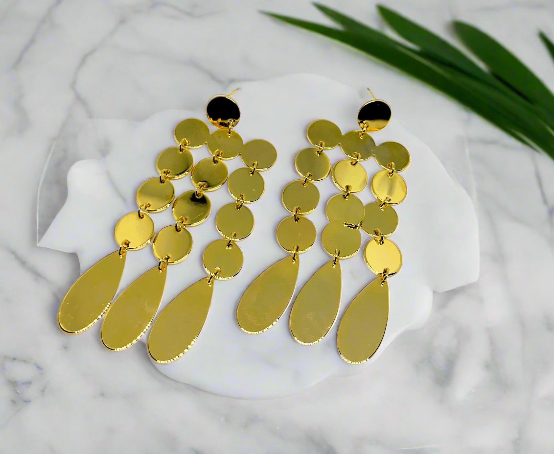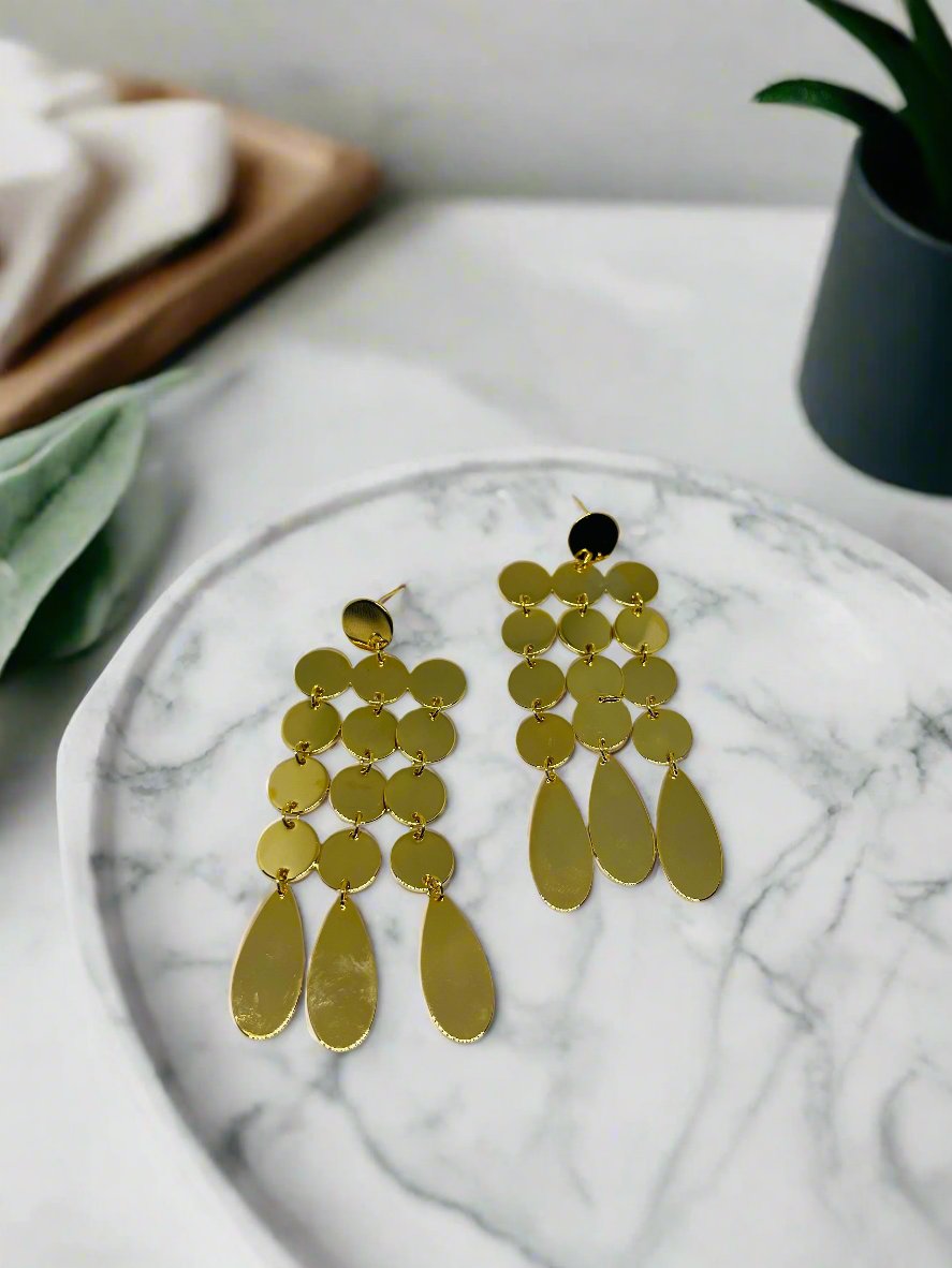Make a stunning entrance with the Chandelier Drop Gold Earrings, crafted in exquisite 18k gold. Designed for luxury and party wear, their anti-tarnish and waterproof features ensure lasting brilliance and timeless sophistication.