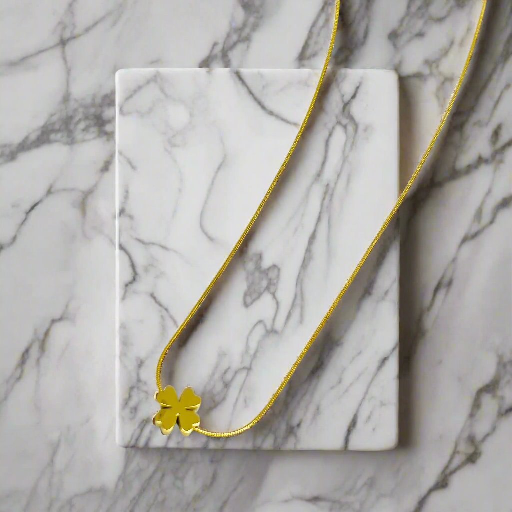 The Clover Flower Necklace is an 18kt gold-plated piece, featuring a delicate clover flower pendant that adds a touch of elegance and charm. Anti-tarnish and waterproof, this necklace is designed for lasting beauty, making it perfect for everyday wear or special occasions. Its graceful simplicity complements any outfit with effortless sophistication.