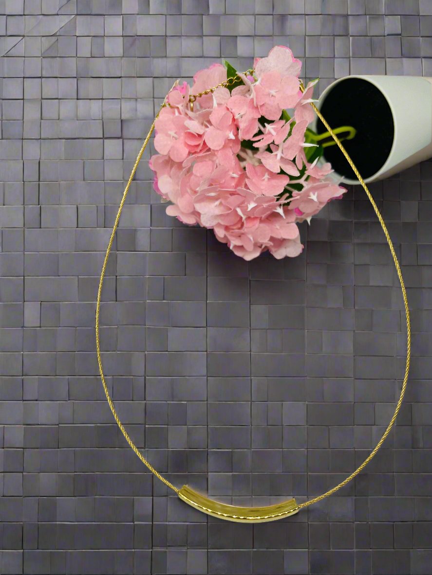 The Curve Pendant Necklace features an 18kt gold-plated, wired chain that adds a contemporary twist to classic elegance. Anti-tarnish and waterproof, this necklace offers durability alongside its sleek design, making it a versatile accessory for any occasion. Its minimalist yet stylish curve pendant ensures a sophisticated and timeless look.