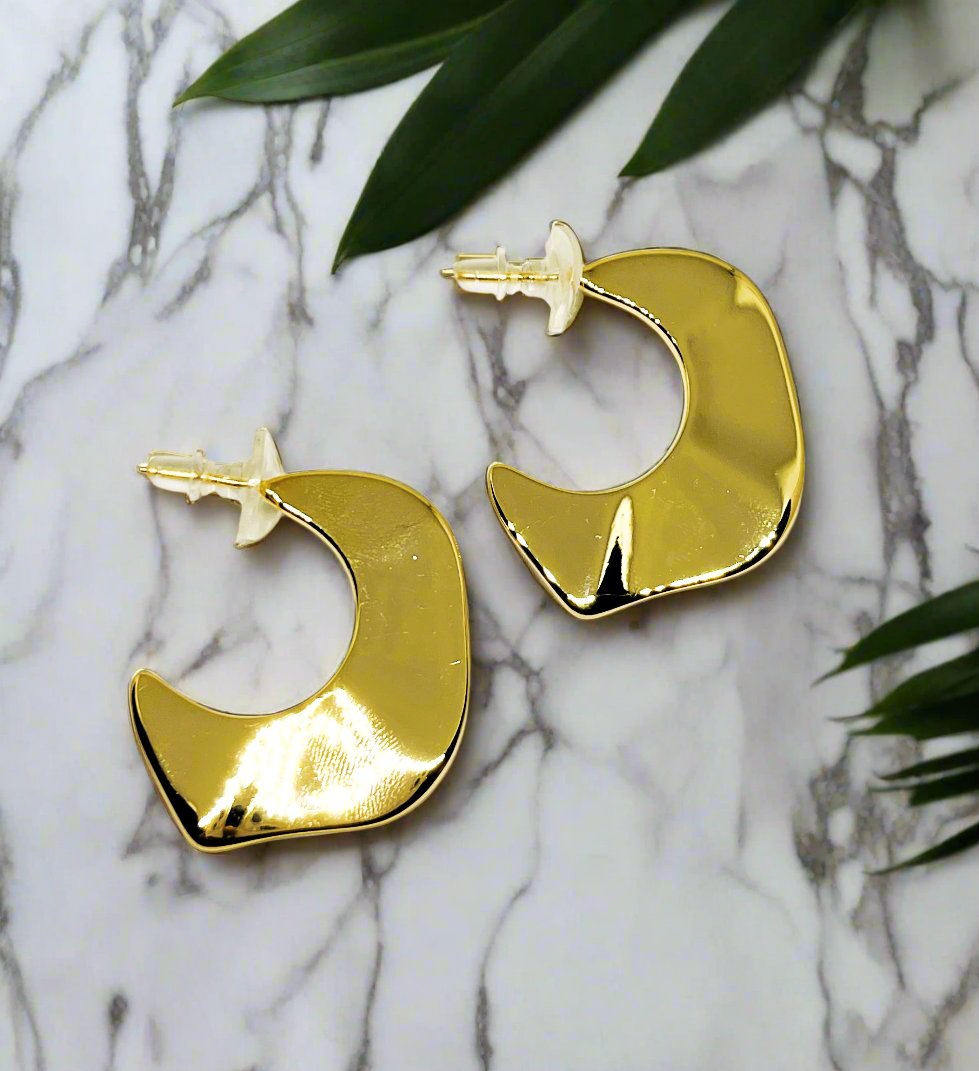 Indulge yourself with our Distorded Gold Earrings. Made with 18k gold and stainless steel, these earrings are anti-tarnish for lasting beauty. Perfect for everyday wear, add a touch of luxury to your wardrobe. Elevate your style and make a statement with our elegant and exclusive earrings.