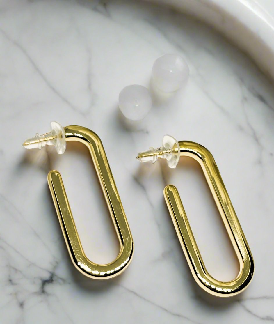 Enhance your elegance with the Elongated Hoops Earrings, crafted in radiant 18k gold. With their timeless, sleek design and anti-tarnish, waterproof qualities, these earrings offer enduring luxury and refined sophistication.