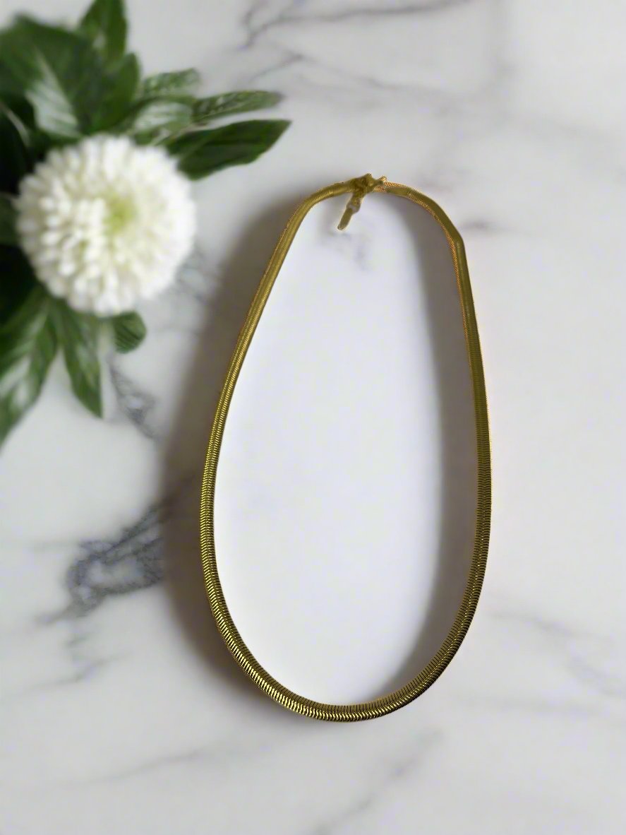 The Herringbone Snake Chain is an 18kt gold-plated necklace, crafted with a sleek, flat design that lies smoothly on the skin. Anti-tarnish and waterproof, it offers lasting shine and durability. Perfect for layering or wearing solo, this chain exudes timeless elegance for any occasion.